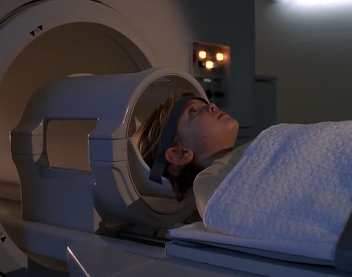 Miss Chambliss from Child Services confronts Scully about Emily’s medical condition and Dana’s attempts to make medical decisions for Emily without proper authority. Scully continues to fight for her rights as Emily’s mother. Back in the nursing home, Mulder learns from Frohike that eight of the elderly women who reside there are listed as mothers for recent births. They’re also all on the same hormone medication. Lucky for Frohike, Mulder thinks he has a shot with these women. Emily’s next painful test puts her in a hyperbaric chamber. Fox finds several elderly women enjoying their medicated beauty sleep. (Is this what our taxes are paying for??) He finds an embryo with Dana’s name and birth date on it. Oh good, Emily can have a sibling. After Calderon returns, Mulder steals several vials, but he gets caught by Detective Kresge and drops them. Fox very, very quickly explains the situation and the detective seems to be on board. Unfortunately, he doesn’t listen when Mulder tells him not to shoot Calderon. Should have briefly mentioned the alien stuff, Fox. Kresge shoots Calderon twice and gets overcome by the toxins. “Calderon” then morphs into the detective and gets away.